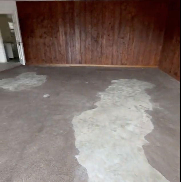 We started by inspecting the garage floor to pinpoint all the issues. The peeling surface exposed significant cracks, holes, and damage that needed repair. One unique challenge was an old toilet hole in the floor, which required a permanent fix. Our plan focused on creating a smooth, seamless, and durable floor that looked great and could handle daily use.