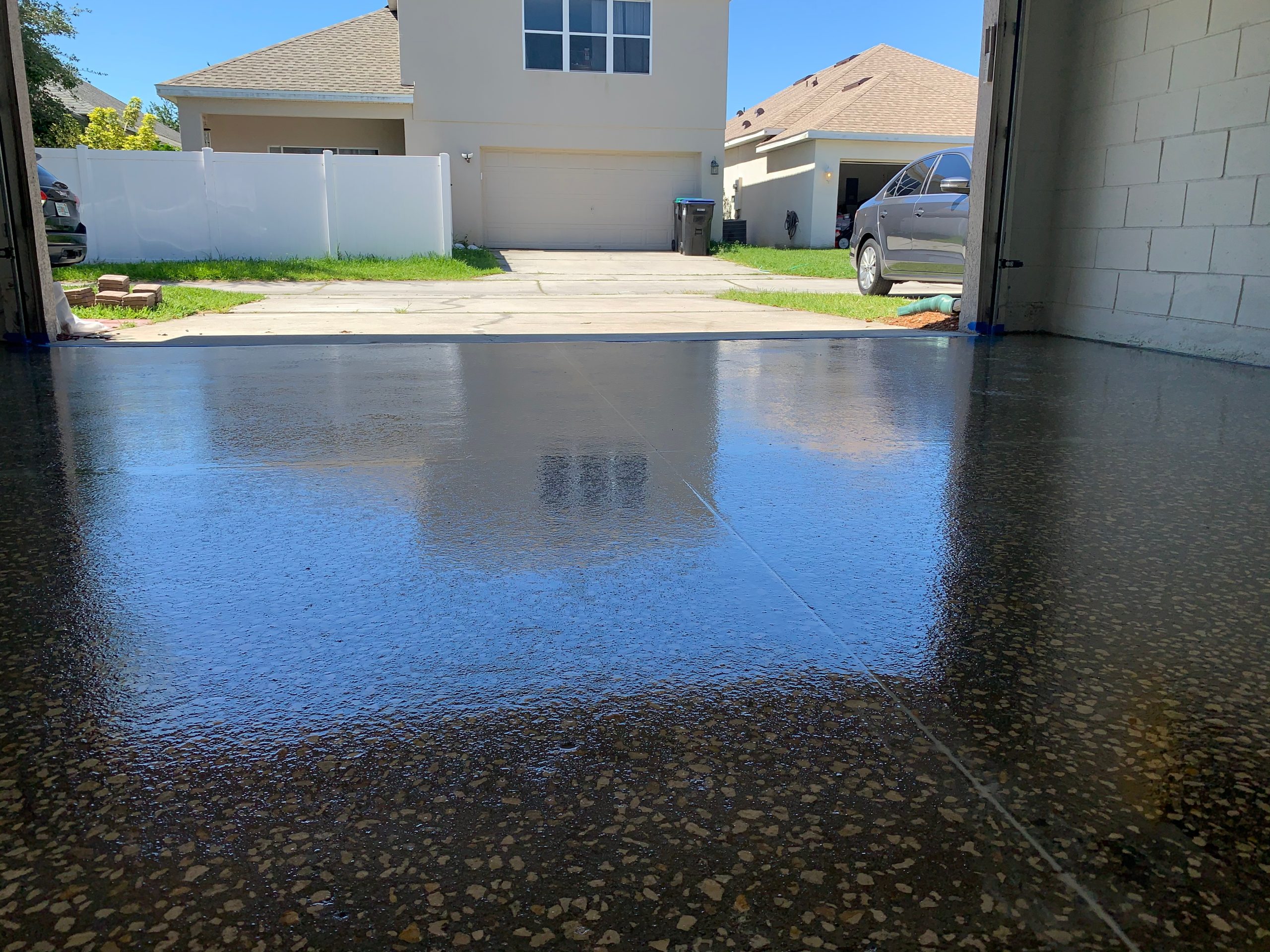 Driveways vary widely because of their size, but a standard two-car driveway in the Orlando area (600 to 800 sq ft) typically falls between $2,000 and $5,000 for a professional polyaspartic system. Heavy vehicle traffic requires a thicker system, which pushes cost upward.