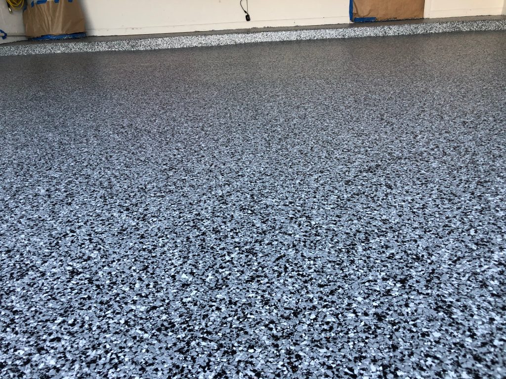 - Coating System: A standard epoxy/flake system is less expensive than premium systems such as our polyaspartic coatings or decorative finishes like metallic epoxy.